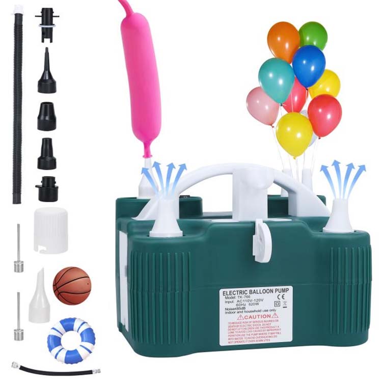 Globo elektrikoaren ponpa 5 inflazio tobera, luzapen-mahuka eta baloiaren inflazioaren mahuka da, hala nola, koltxo puzgarriak, igeriketa eraztunak, yoga pilotak, itsasontzi puzgarriak, eta, hala nola, saskibaloi, futbolak eta boleibolak. Globo ebakitzaile berezi bat eta smart korapiloa bereziki barne hartzen dira, globo ebaketa eta korapiloa pauso bakarrean egin daitekeela. Nahiz eta hasiberriek maila profesionalaren globo konformazioa azkar osatu dezakete.