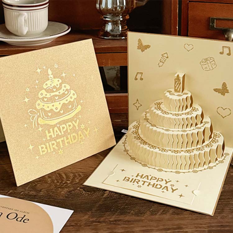 3D urtebetetze txartelaren azala koloretako grabaketa prozesu batekin egiten da. Barrualdeak 4 geruzako tarta baten diseinua du, eta zorion-txartel txiki bat gehitzen da zoriontzeko mezurako.