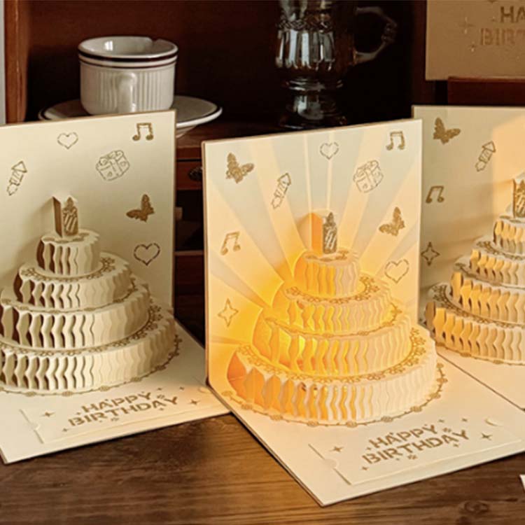 3D Birthday txartela zorion-txartelaren kategorian produktu berria da. Ingurumena errespetatzen eta seguruen materialez egina, hiru dimentsiotako forma eta barne argiztapena eta musika efektuak ditu. Trinkoa eta eramangarria, gutunazal bat, karta bat eta karta txiki bat osatzen dute. Elementu klasikoak eta modernoak nahasten dituen urtebetetze txartel integrala da.