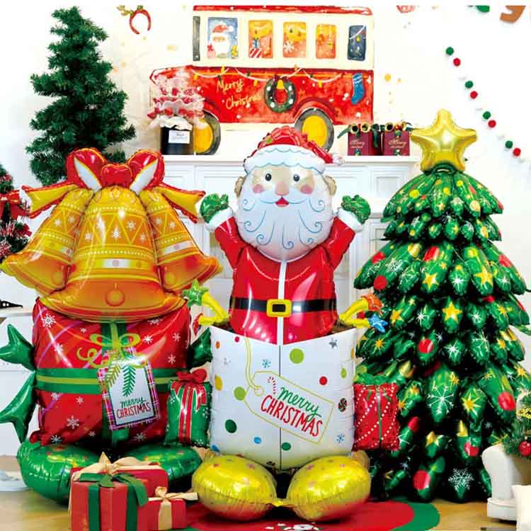 Gabonetako aluminiozko paperezko globoek Gabonetako elementuak barneratzen dituzte beren diseinuetan. Santa Claus, Gabonetako zuhaitzak, elur malutak eta kanpaiak bezalako forma klasikoetan eskuragarri daude puxika hauek "Eguberri on" esloganekin apainduta. Koloreek Gabonetako elementuak biltzen dituzte, batez ere gorria, berdea, urrea eta zilarra bezalako Gabonetako koloreak agertzen dira, jai giroa sortuz. Tamaina ugaritan eskuragarri, 30 cm-tik hasita 100 cm-ko erraldoiraino, hainbat agertoki eta beharretara egokitzen dira.