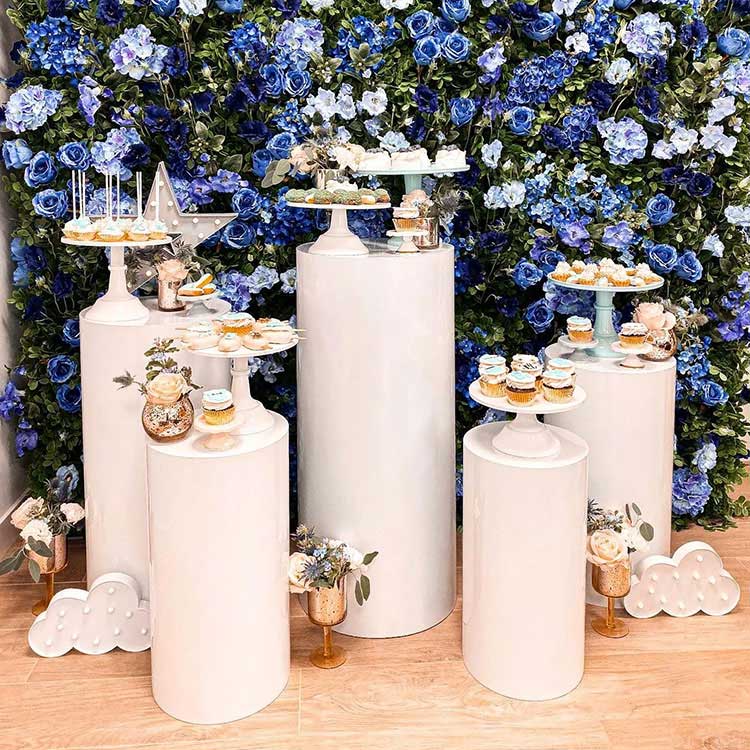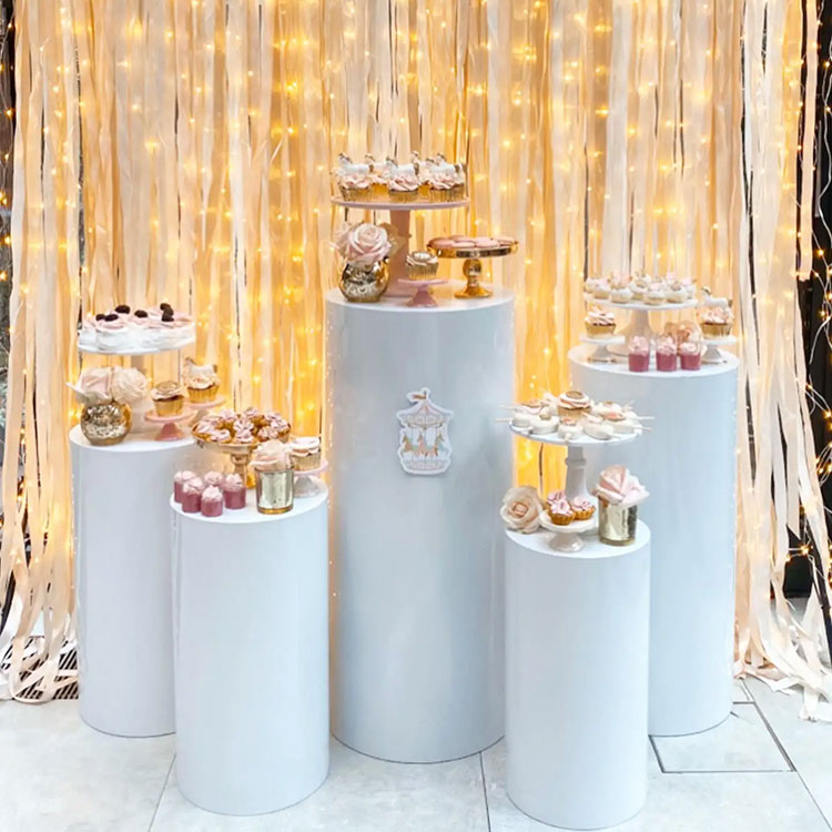 Oinarri zilindrikoko postre-mahaiak edukiontzi eta apaingarri gisa balio du. Normalean, hainbat konbinaziotan etortzen dira: 3 piezako konbinazioak, 5 piezako konbinazioak, 7 piezako konbinazioak, etab. Konbinazio ohikoena bost pieza da. Hainbat tamainatako tutu zilindriko independenteak malgutasunez antolatu daitezke, eta eszenaren zati garrantzitsua dira. Aldi berean, tamaina eta forma pertsonalizatzea ere eskaintzen dugu. Gainera, zure festako apaingarriekin bat egiten dute.