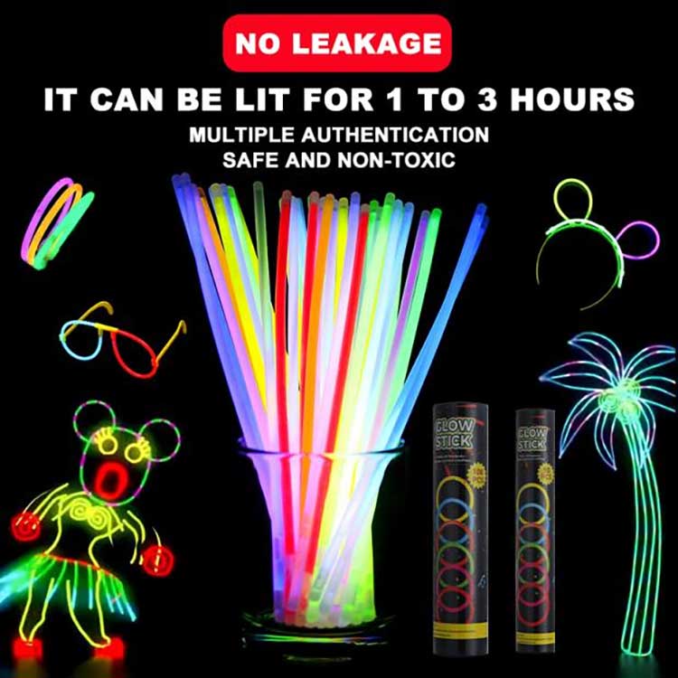 1.Makil fluoreszenteak 3 urtetik gorako pertsonentzat egokiak dira. Paketeak pieza txikiak ditu. Makil fluoreszenteen barruan dagoen likidoa ez da jangarria. Haurrek heldu baten zaintzapean erabili behar dituzte.