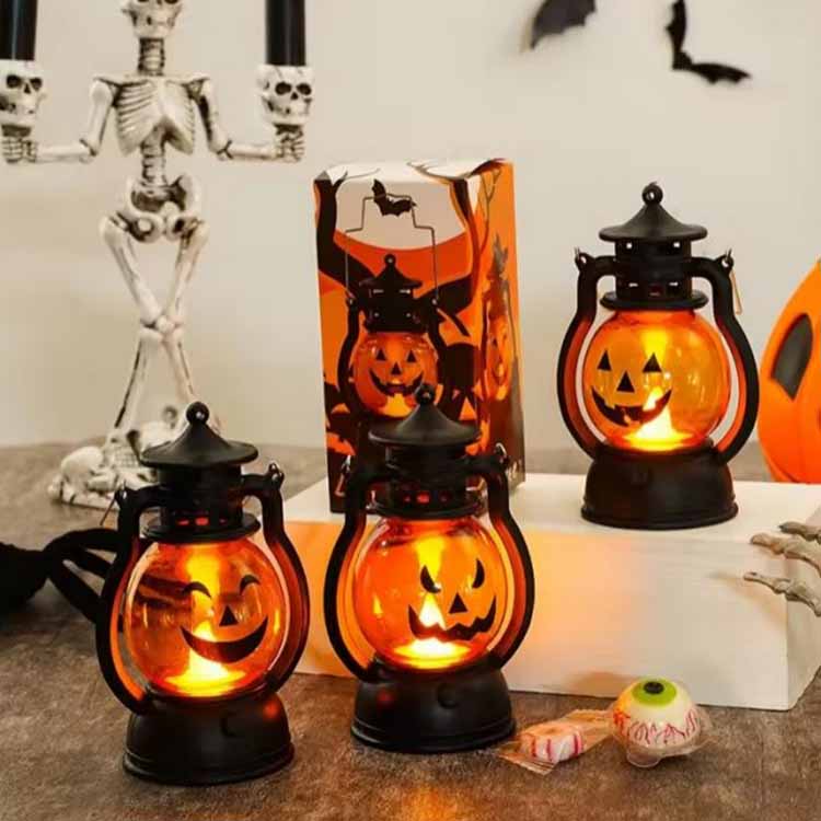 Halloween kalabaza linterna Halloween apaingarri ikonikoenetako bat da. Maskota loditutako plastikoz egina, farolak ghost aurpegiak eta argi iturri bat bezalako diseinuak zizelkatzen ditu, barruan, misteriotsu, eerie eta giro dibertigarria sortuz.