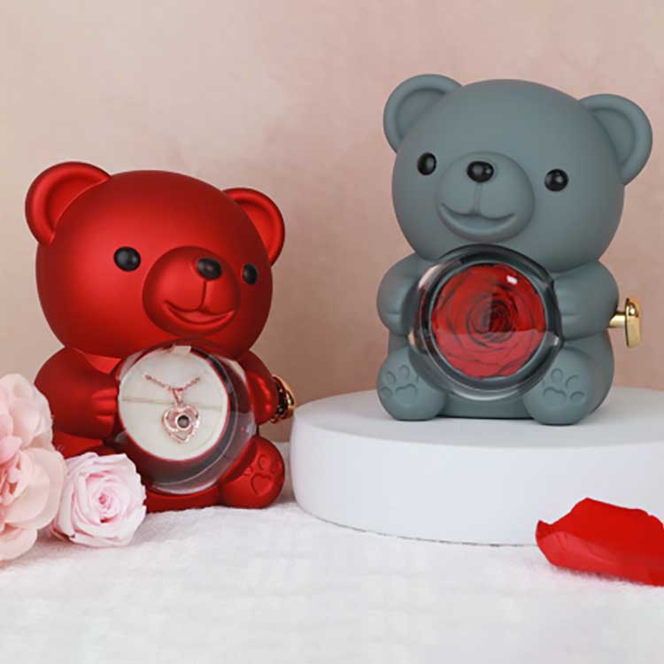 Hug Bear Rose bitxi-kutxa hau mahaian, apaletan edo gau-mahaian erakusteko erabiltzen da. Bere ezaugarririk deigarriena erdian gordetako arrosa da. Arrosa irekitzean bitxiak, eraztunak edo oroigarriak gordetzeko konpartimentu bat agertzen da.