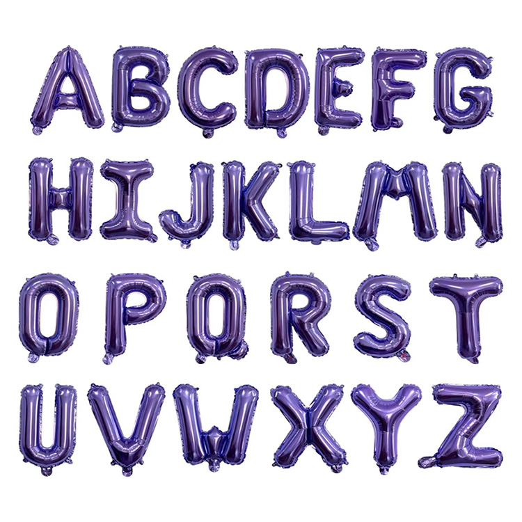 NewShine Purple Letter Number Foil Globo diseinu ezberdinetan dago, globo serie honek zenbaki eta letra bertsioak ditu, 16 hazbeteko, 32 hazbeteko eta 40 hazbeteko tamainetan eskuragarri. 0-9 hamar zifrak eta A-Z alfabetoko 26 letrak ditu. Zenbakiak eta letrak ere pertsonaliza ditzakezu zure beharretara egokitzeko.