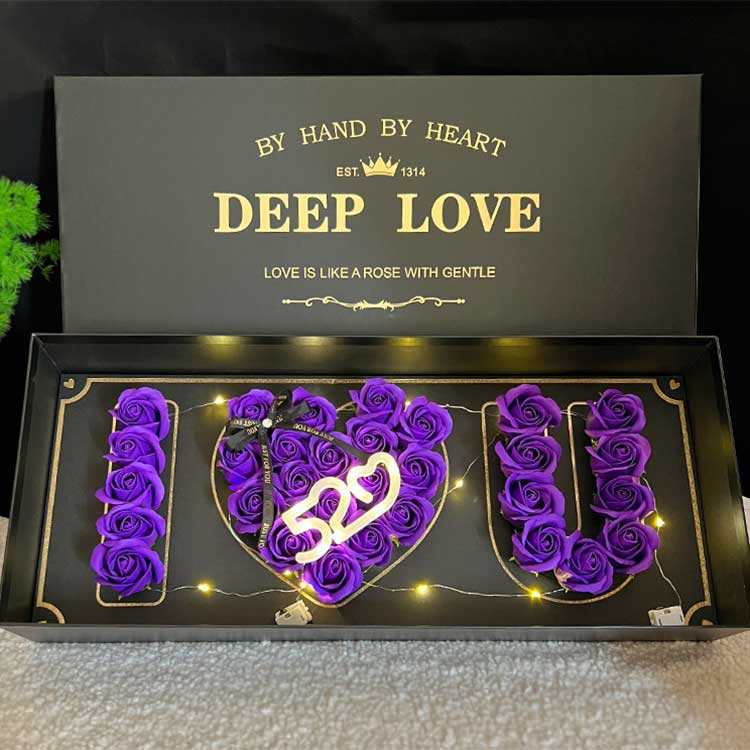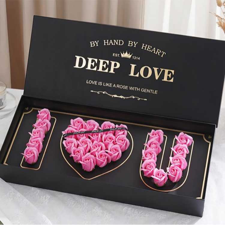 Soap Rose Heads Flower Box-ek 61 cm * 26 cm * 10 cm neurtzen du. Tamaina honek xaboi lore kopuru nahikoa har dezake, ikusmen efektu bikaina sortuz, eta, aldi berean, ondorengo biltegiratzea eta garraioa errazten du. Erosketa pertsonala opari gisa edo korporazio handiko erosketa opari gisa, erraz bete ditzake erabilera pertsonal eta korporatiboaren beharrak.